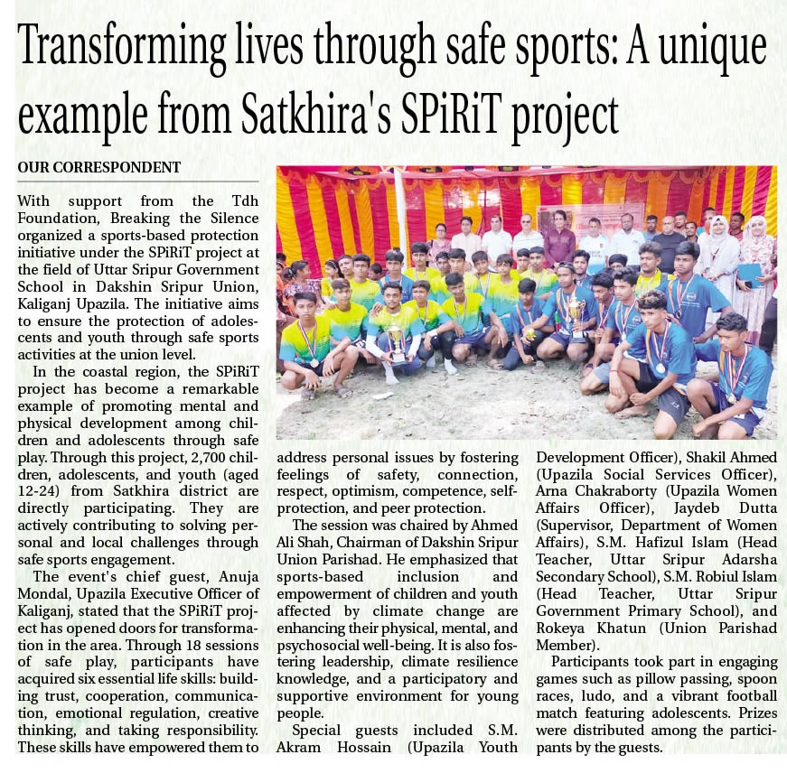 The existing action of SPiRiT aims to promote the inclusion and empowerment of children and youth who are displaced or at risk of climate-induced displacement in Satkhira District. As part of the ALL programme, the SPiRiT project will support children and youth (aged 12 – 24 years) who are already affected by climate change or at risk of climate-induced vulnerabilities in the southern coastal zones of Bangladesh. The project will expand its work across five upazillas within Satkhira district— Shamnagar, Ashasuni, Debhata, Kaliganj, and Satkhira Sadar — directly engaging 5400 participants over a period of 02 years.